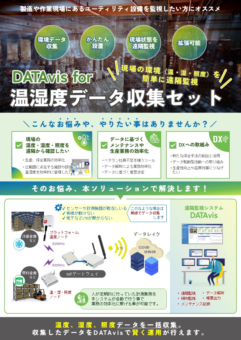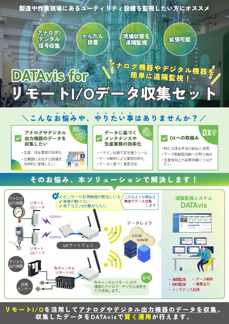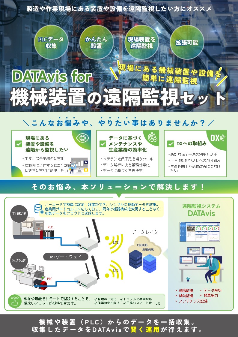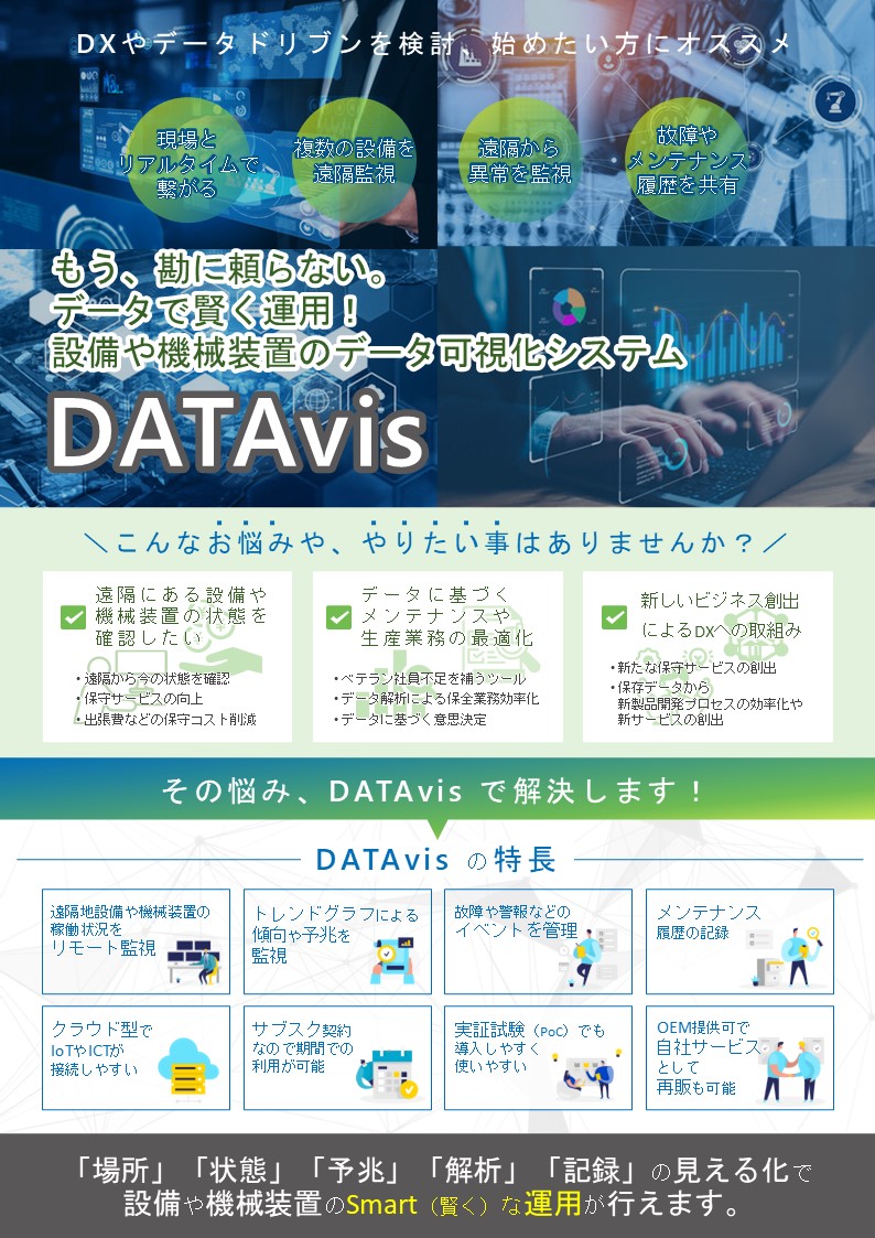 【DATAvis】は、IoTやICTで収集したデータの蓄積から、遠隔監視、分析機能まで搭載したソリューションです。