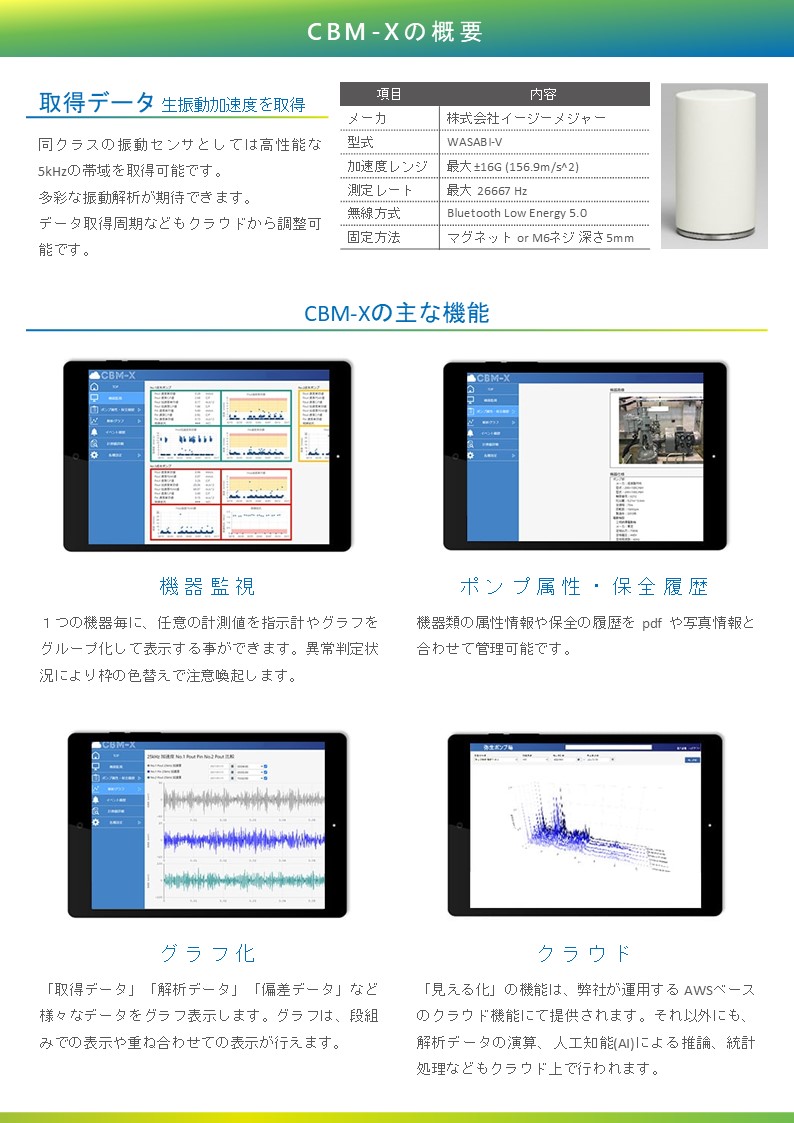 本ソリューションは、データ蓄積・遠隔監視・分析機能を統合したスマート保全システムです。